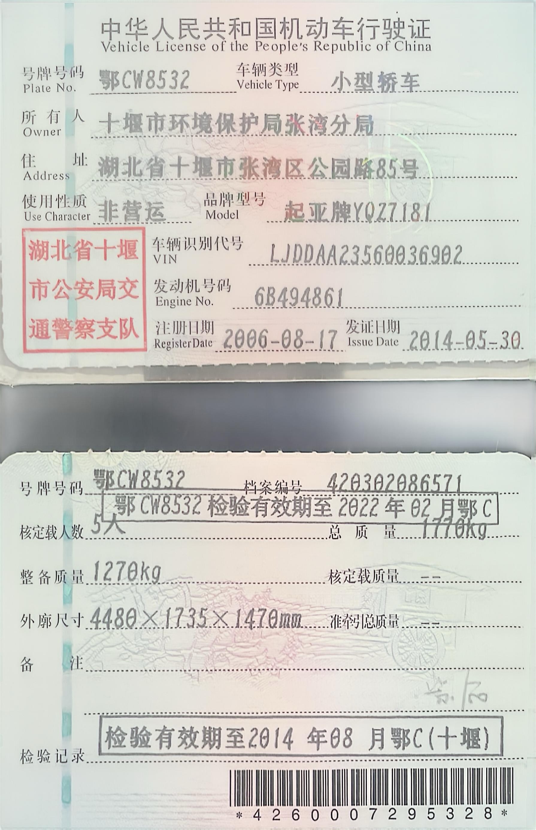 7.湖北省十堰市生態(tài)環(huán)境局張灣分局報(bào)廢車輛: